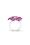 Featuring a white rhodium finish cocktail floral ring studded with ruby spinel stones, set in 92.5 sterling silver. Perfect for brunch dates, casual outings, office wear, festive lunches or evening get-togethers.