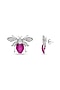White Rhodium Finish Ruby Spinel Stone Honey Bee Stud Earrings In Sterling Silver