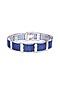 Featuring a white rhodium finish cuff bracelet studded with blue sapphire synthetic spinel stones, set in 92.5 sterling silver. Perfect for brunch dates, casual outings, office wear, festive lunches or evening get-togethers.