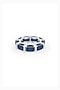 Featuring a white rhodium finish eternity band ring studded with blue sapphire and pristine white cubic zirconia crystals, set in 92.5 sterling silver. Perfect for brunch dates, casual outings, office wear, festive lunches or evening get-togethers.