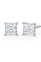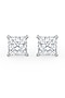 White Rhodium Finish Square-Shaped Cubic Zirconia Crystal Stud Earrings In Sterling Silver