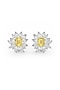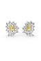 White Rhodium Finish Yellow Cubic Zirconia Crystal Floral Stud Earrings In Sterling Silver