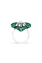 Featuring a white rhodium finish cocktail blossom ring studded with zircons and emerald green spinel stones, set in 92.5 sterling silver. Perfect for brunch dates, casual outings, office wear, festive lunches or evening get-togethers.