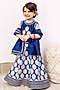 Blue Chanderi Silk Patchwork & Hand Blocked Printed Lehenga Set For Girls