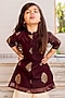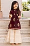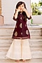 Featuring a wine straight kurta for girls in chanderi base with print. It is paired with cotton cream printed sharara pants. Accessorize it with sandals and cute hair accessories for any festive occasion.