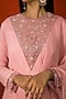 Featuring a baby pink kalidar kurta in pure malai chanderi base with zardosi embroidery. It is paired with embroidered pants and a pure organza embroidered dupatta. Style it with dangler earrings and heels for festive occasions.