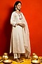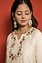 Featuring an ivory kurta in pure silk chanderi base with thread embroidery. It is paired with pants and a mul chanderi dupatta. Style it with dangler earrings and heels for festive occasions.
