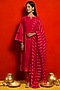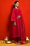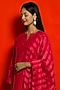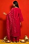 Featuring a pink kurta in premium summer silk base with pintucks detail. It is paired with straight pants and a stripe organza scalloped dupatta. Style it with dangler earrings and heels for festive occasions.