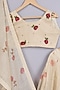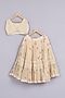 Beige Jute Silk Hand Block Printed Lehenga Set For Girls