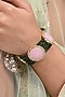 Featuring a gold finish bracelet studded with pink rose quartz, set in brass.