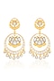 Featuring a pair of 18kt gold plated jhumka earrings studded with kundan polki, set in brass. Perfect for dancing through festivals or turning heads at festive gatherings, they bring a playful sparkle wherever you wear them.