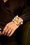 Featuring a 22kt gold plated adjustable cuff bracelet studded with pearls, set in brass. Perfect for evening wear, date nights or cocktail events, this jewellery is a wardrobe must for those who love to shine effortlessly.