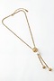 Featuring a 22kt gold plated lariat floral necklace studded with pearls, set in brass. Perfect for evening wear, date nights or cocktail events, this jewellery is a wardrobe must for those who love to shine effortlessly.