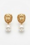 Featuring a pair of 22kt gold plated lion stud earrings studded with pearls, set in brass. Perfect for evening wear, date nights or cocktail events, this jewellery is a wardrobe must for those who love to shine effortlessly.