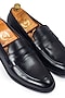 Featuring a pair of black handcrafted slip-on shoes in pure leather base with penny strap. It has a leather lining and leather sole. Perfect for casual and semi-formal events, these shoes combine comfort with a modern aesthetic.