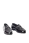 Featuring a pair of black penny slip-ons in synthetic leather base with handcrafted buckle detail. It is paired with a synthetic leather lining and rubber sole. Elevate your stride with timeless elegance and exceptional craftsmanship, perfect for formal events.