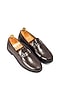 Featuring a pair of brown penny slip-ons in synthetic leather base with handcrafted buckle detail. It is paired with a synthetic leather lining and rubber sole. Elevate your stride with timeless elegance and exceptional craftsmanship, perfect for formal events.