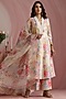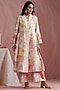 Featuring an off-white kurta in pure chanderi silk base with an attached pure cotton inner, print and machine embroidery. It is paired with pants and a pure organza dupatta. Accentuate with statement earrings and heels for a festive occasion.