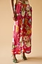 Featuring a pink kaftan in pleated satin and crepe base. It is paired with pants. Style it with gold earrings and heels for a casual yet classy look.
