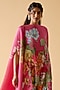 Pink Pleated Satin & Crepe Kaftan Set