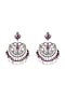 Featuring a pair of black rhodium finish earrings studded with purple stones, zircons and pearl, set in base metal. It is paired with a matching maang tikka.