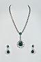 Black Rhodium Finish Emerald Stone & Zircon Long Necklace Set