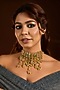 Featuring a gold finish choker necklace studded with emeralds and carved beads, set in mixed metal. Ideal for festive occasions, weddings, or elevating your elegant evening look.