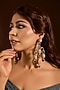 Featuring a pair of gold finish dangler earrings studded with moonstone, emeralds and zircon, set in mixed metal. Ideal for festive occasions, weddings, or elevating your elegant evening look.