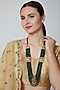 Featuring gold finish necklace studded with pearls and emeralds, set in brass.