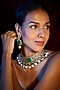 Featuring a gold finish choker necklace studded with zircons, pearls and emeralds, set in mixed metal. It is paired with a matching pair of earrings.