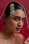 Featuring a gold finish green meenakari maang tikka studded with kundan polki, set in mixed metal.