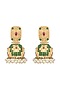 Featuring a pair of gold finish jhumka earrings studded with pearls and green stones, set in base metal.