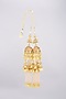 Featuring a pair of gold finish hanging kaleeras studded with orange stones and beads, set in brass.