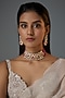 Featuring a gold finish choker necklace studded with kundan polki, red beads and ruby stones, set in mixed metal. It is paired with a matching pair of earrings. Perfect wear for festive occasions or wedding ceremonies.