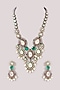 Featuring a gold finish green meenakari long necklace studded with kundan polki, pearls and ruby stone, set in mixed metal. It is paired with a matching pair of earrings. Perfect wear for a festive or wedding occasion.