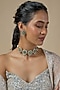 Featuring a gold finish choker necklace studded with mint green stones, moissanite and zircons, set in mixed metal. It is paired with a matching pair of earrings. Add a touch of sparkle to your ensemble, perfect for wedding ceremonies or festive celebrations.