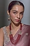 Gold Finish Moissanite & Red Beaded Long Layered Necklace Set