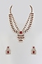 Gold Finish Moissanite & Ruby Stone Long Necklace Set