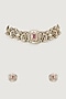 Gold Finish Multi-Colored Stone & Emerald Choker Necklace Set