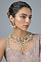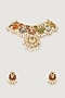 Featuring a gold finish choker necklace studded with multi-colored stones, pearls and beads, set in mixed metal. It is paired with a matching pair of earrings. Accentuate this elegant jewellery with your look for a polished finish, ideal for festive functions, family celebrations or evening gatherings.