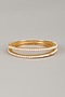 Featuring a pair of gold finish bangles studded with pearls, set in mixed metal. This jewellery elevates weddings, parties and festive looks, style it with embellished outfits and heels for a refined, glamorous finish.