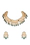 Featuring a gold finish choker necklace studded with kundans, stones and pearls, set in base metal. It is paired with a matching pair of earrings.