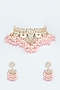 Featuring a gold finish choker necklace studded with kundan polki and pink beads, set in mixed metal. It is paired with a pair of matching earrings.