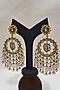 Featuring a pair of gold finish chandbali long earrings studded with pink stones, set in brass.