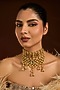 Featuring a gold finish choker necklace studded with ruby and carved beads, set in mixed metal. Ideal for festive occasions, weddings, or elevating your elegant evening look.