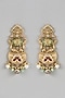 Featuring a pair of gold finish dangler earrings studded with ruby, emerald stone and beads, set in mixed metal. Perfect wear for festive occasions or wedding ceremonies.