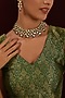 Featuring a gold finish green meenakari choker necklace studded with ruby stones and kundan polki, set in brass. It is paired with a matching pair of earrings. Perfect wear for a wedding or celebration.