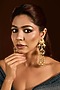 Featuring a pair of gold finish dangler earrings studded with ruby stones, pearls and beads, set in mixed metal. Ideal for festive occasions, weddings, or elevating your elegant evening look.