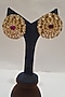 Featuring a pair of gold finish stud earrings studded with red stone, set in brass.