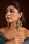 Featuring a pair of gold finish dangler earrings studded with ruby, turquoise stones, emerald beads and zircons, set in mixed metal. Ideal for festive occasions, weddings, or elevating your elegant evening look.